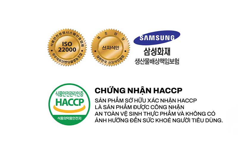 Nhà máy sản xuất Chunmani: Với hơn 23 năm trong lĩnh vực sản xuất và thực phẩm bảo vệ sức khỏe. Chunmani đã xây dựng một quy trình sản xuất nghiêm ngặt và tuân thủ các tiêu chuẩn cao. Với phương châm sản phẩm dành cho gia đình, vấn đề vệ sinh được đặt lên hàng đầu. Tất cả sản phẩm đều đạt chứng nhận ISO 22000 và HACCP.